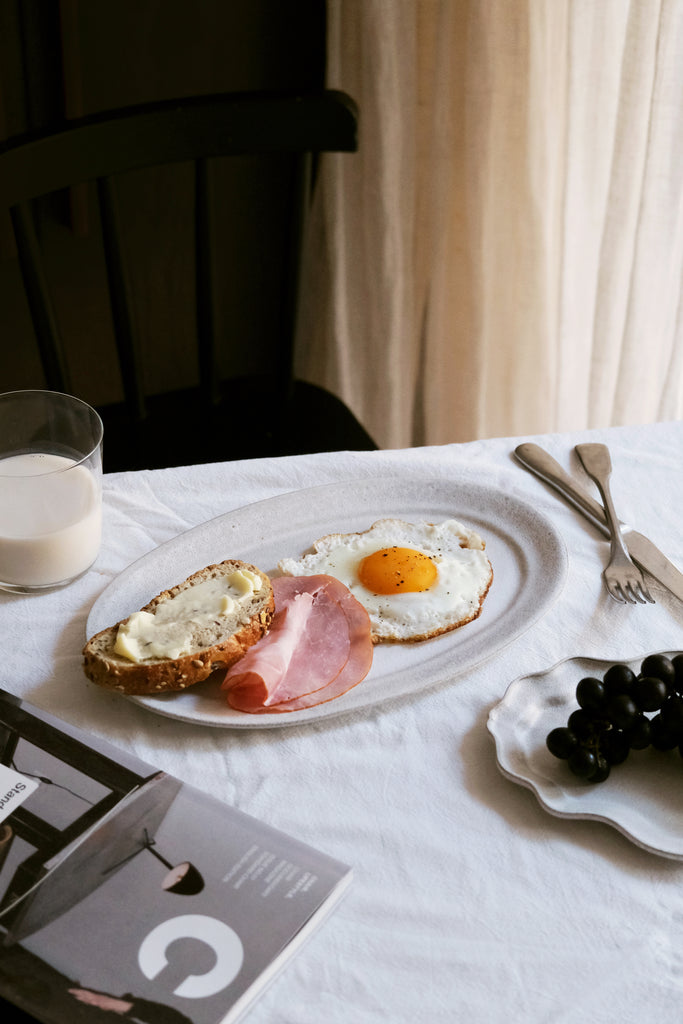 Inspired by treasured breakfast moments shared with loved ones, the Moonrise Breakfast Plate brings intention to your table. This elegant oval piece flows effortlessly between everyday mornings and unhurried weekend gatherings, its light, streamlined form creating space for what truly matters, nourishing food and meaningful connection. A gentle reminder to embrace the beauty in life's simplest rituals.