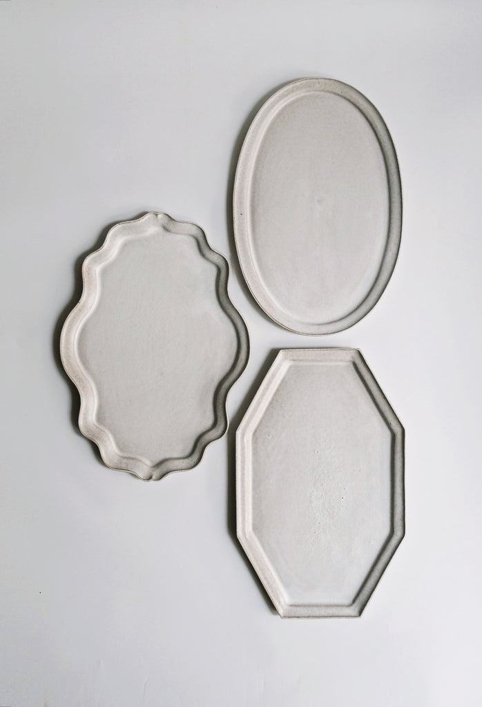 Moonrise Plate collection features 20 variations across our three signature shapes: the soft grounding Oval, the classic Diamond and the elegant Shell. Each one has its own mood, yet they come together in perfect harmony. We truly hope you love them as much as we loved creating them for your home.